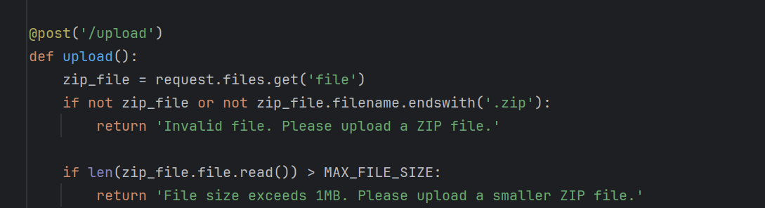 根据这个逻辑可知,上传的文件必须要是zip压缩文件