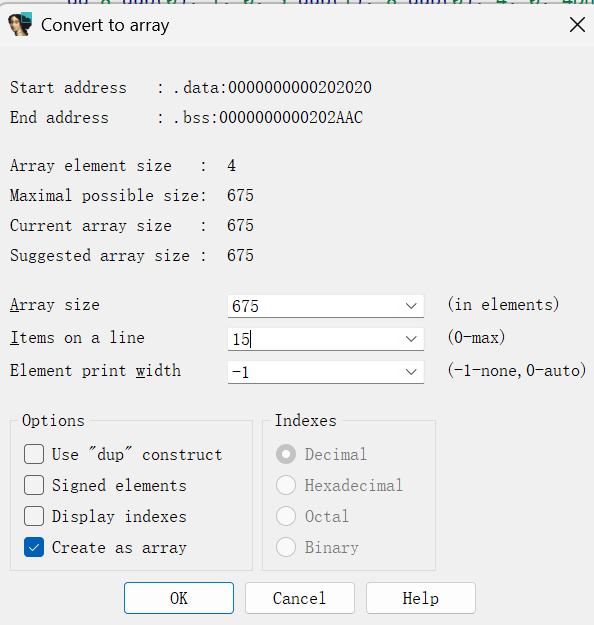 会发现这样一大坨,咱们取消掉dup然后按照15*15排列查看数组
