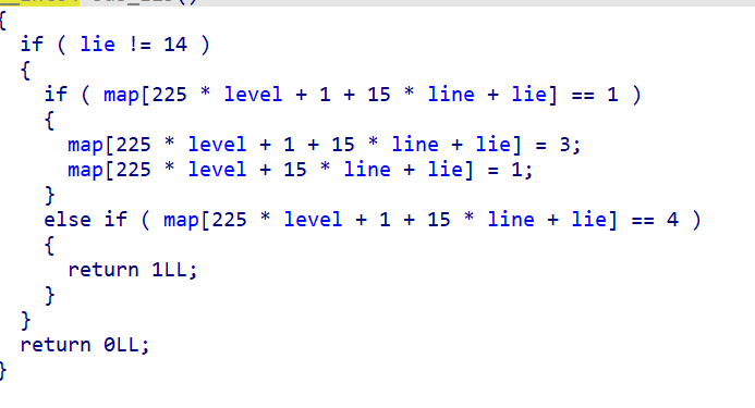 如果到了终点(4) 返回1,循环里就会进入下一关,否则返回0,很清晰了,于是来看map